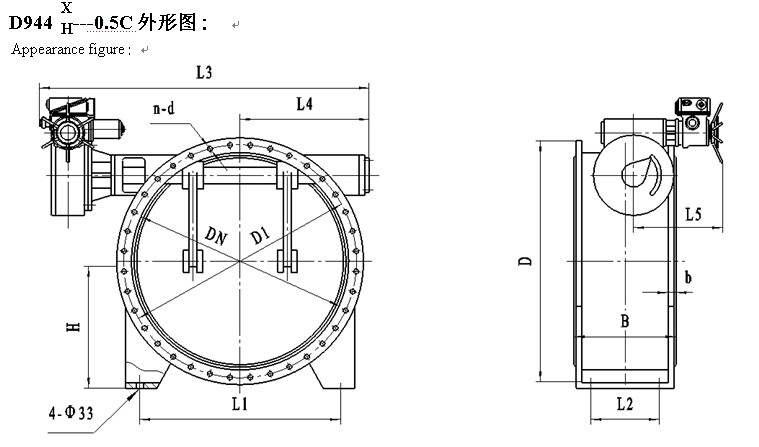 The valve has the features of compact structure, endurance, little in the lost of flow resistance, good seal, reliable self-locking, flexible operation, definite direction, easy to maintenance and long life. The seal of driving shaft is out seal, which is easy to be adjusted and changed without stopping, so the out leakage is avoided effectively. All kinds of seal type can suit different medium. It is especially suitable in the condition of adjusting, cutting off and self-protecting quickly. The valve is used with worm gear driving and electric device to form a complete set to realize open-close operation. It is the ideal equipment of adjusting flow.