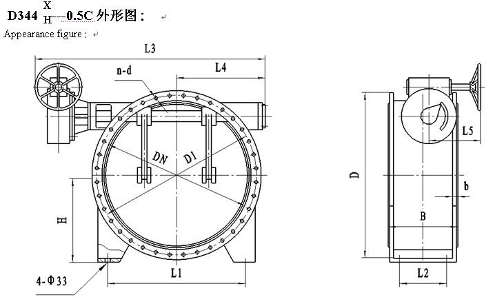 D344 X H---0.5C外形(xing)連接尺寸(cùn):