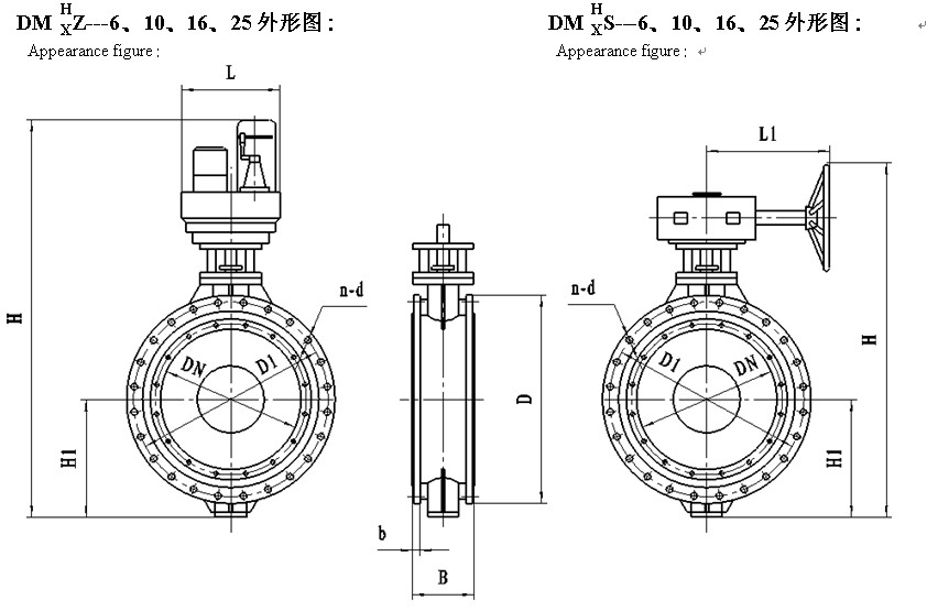 DN | PN | D | D1 | B | b | n-d | H | H1 | L1 | 執(zhí)行器參數 Parameter | |