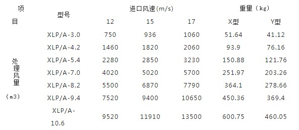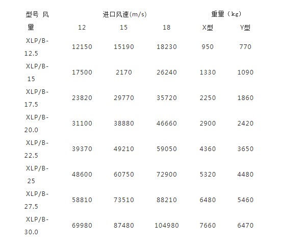 XLP/B型(xíng)12.5~30性能參數表(biǎo):