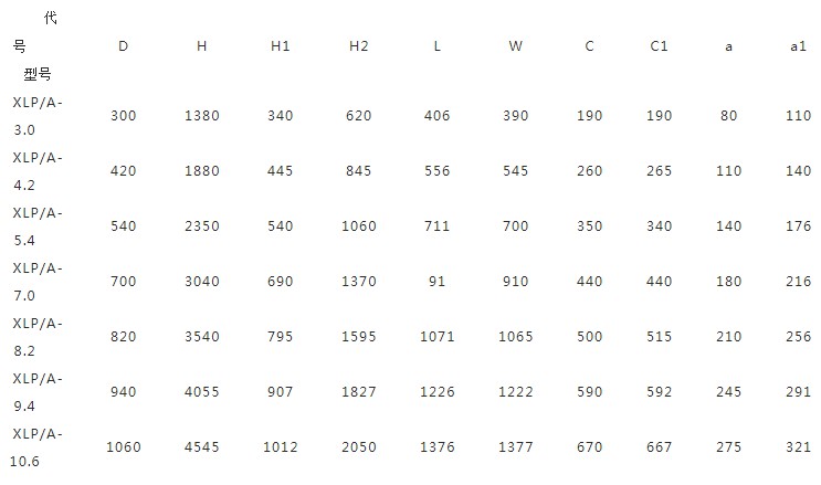 XLP(3.0-10.6)型外形尺寸(cùn)表: